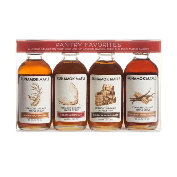 This maple syrup assortment includes four varieties of Runamok's original, barrel-aged, and infused syrups.