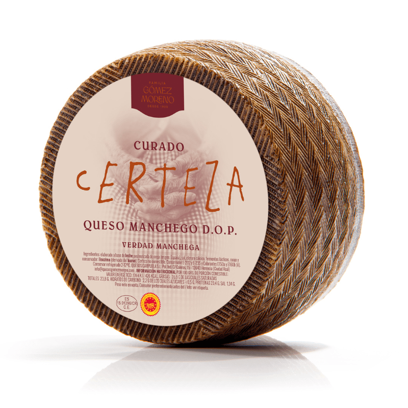 Certeza Manchego DOP is made from the milk of Manchega sheep from the region of La Mancha, Spain. The rind pattern of the cheese is styled as if the cheese was wrapped in sheets of woven esparto grass. This sheep milk cheese is aged for six months which enhances the rich and luscious flavor. This true Manchego is excellent with crackers and jam on a cheese board. You can grate or shred it in salads, macaroni & cheese, sandwiches, and many other gourmet dishes. Or enjoy simply with bread, olive oil, and your favorite wine.