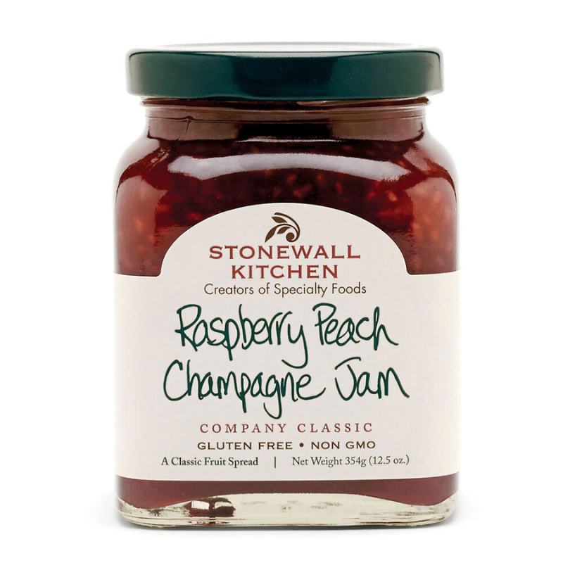 Fruit (raspberries, peaches [peaches, ascorbic acid, citric acid]) Pure Cane Sugar, Fruit Pectin (water and pectin), Lemon Juice, Champagne, Citric Acid, Spices.
